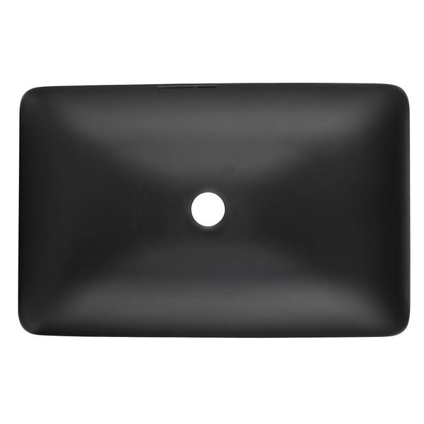 Modern Matte Black Glass Rectangular Vessel Sink with Black Faucet and Pop Up Drain Included