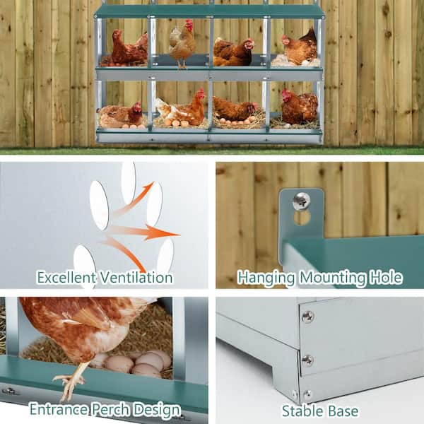 Outdoor Screen Panel, 8-Compartment Chicken Nesting Boxes for Laying Eggs, Metal Poultry Nest Box Wall Mount in Green
