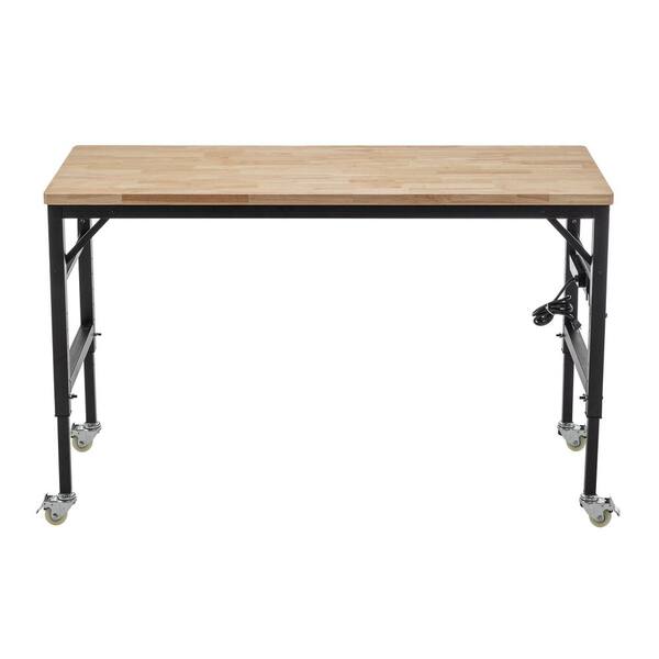 Rectangular Metal Outdoor Side Table with Power Outlets&Wheels, Heavy-Duty Adjustable Workbench for Indoor/Outdoor-Black