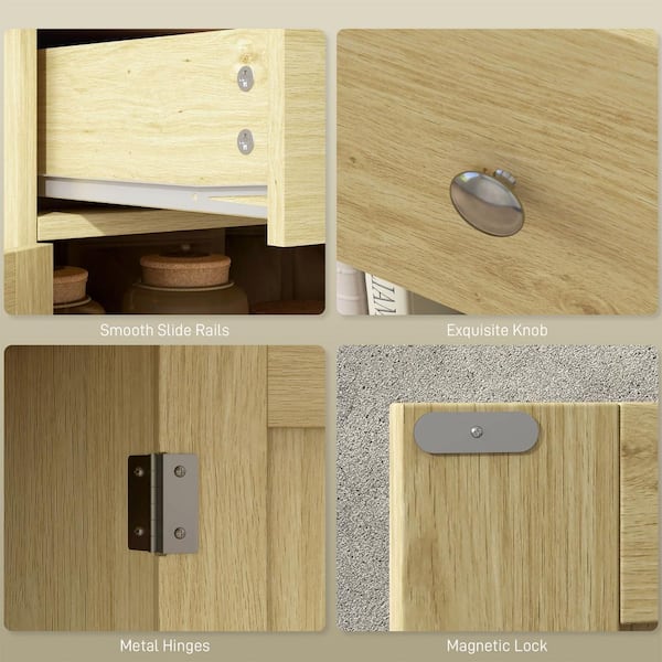 Sideboard with Solid Wood Countertop, Modern Kitchen Storage Cabinet with 2 Drawers and Adjustable Shelf in Natural