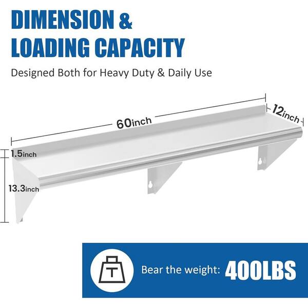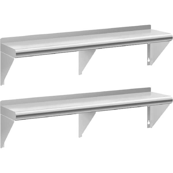 Stainless Steel Shelf 12 in. x 60 in. 2 Pack NSF Wall Mounted Metal Shelving with Backsplash for Kitchen