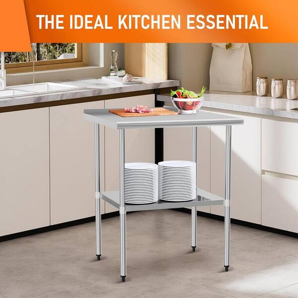 Stainless Steel Table, Metal Prep Table with Adjustable Undershelf for Commercial Kitchen and Garage & Outdoor in Silver