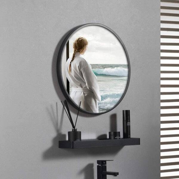 V3 36 in. W x 36 in. H Large Round Aluminum Framed Wall Bathroom Vanity Mirror in Brushed Black