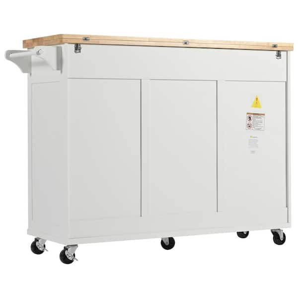 White Rubber Wood 49 in. Kitchen Island Cart with Drop Leaf, Storage Cart with 2-Doors and Slide-Out Shelf
