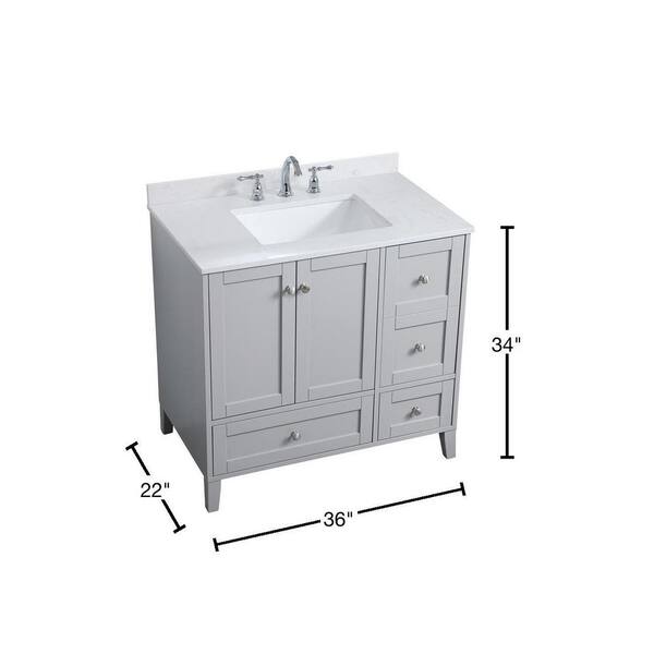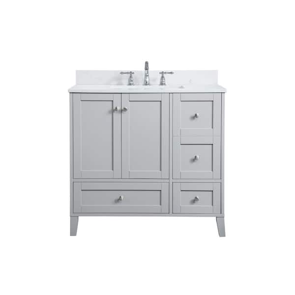 Timeless 36 in. W Single Bath Vanity in Grey with Engineered Stone Vanity Top in White with White Basin with Backsplash