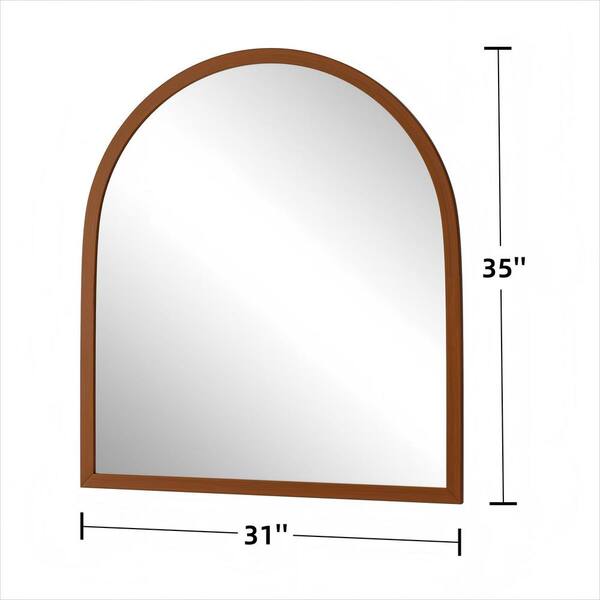 Timeless Elegance: 2 Set Walnut 31 in. W x 35 in. H Arched Wooden Framed Wall Mirror Bathroom, Bedroom Vanity Mirror Set