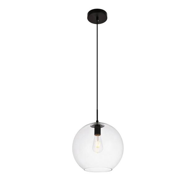 Timeless Home 11.8 in. 1-Light Black and Clear Pendant Light, Bulbs Not Included