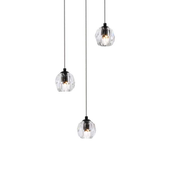 Timeless Home 11.8 in. L x 11.8 in. W x 3.7 in. H 3-Light Black with Clear Crystal Modern Pendant