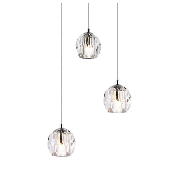 Timeless Home 11.8 in. L x 11.8 in. W x 3.7 in. H 3-Light Chrome with Clear Crystal Modern Pendant