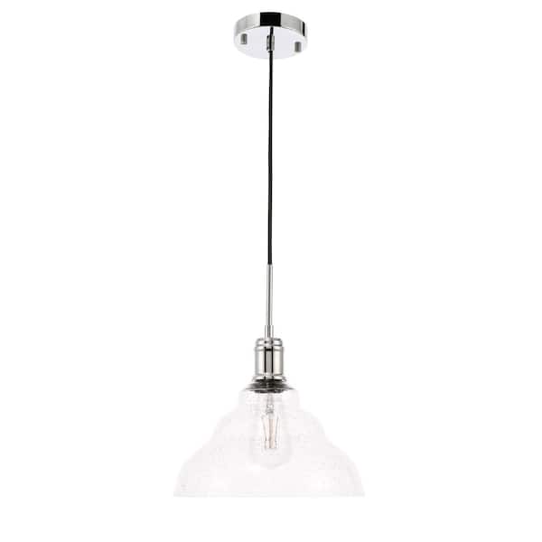 Timeless Home 11 in. 1-Light Chrome and Clear Seeded Glass Pendant Light, Bulbs Not Included