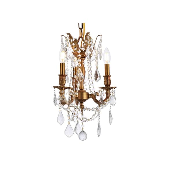 Timeless Home 13 in. L x 13 in. W x 18 in. H 3-Light French Gold with Clear Crystal Traditional Pendant