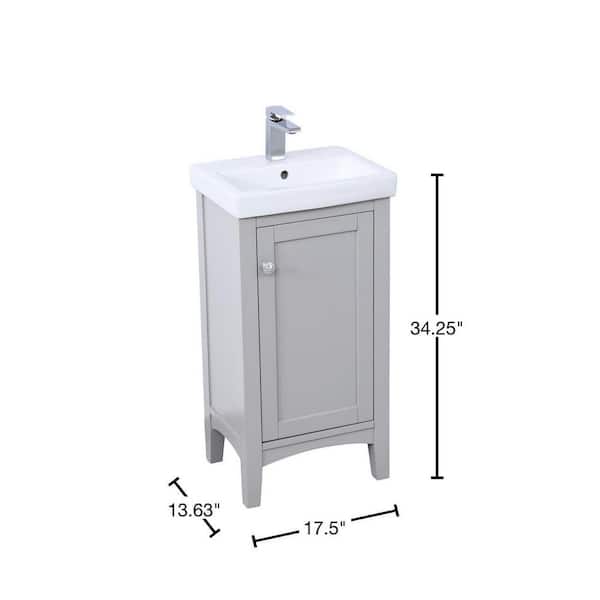 Timeless Home 17.5 in. W x 13.63 in. D x 34.25 in. H Single Bathroom Vanity in Grey with White Ceramic Top and Basin