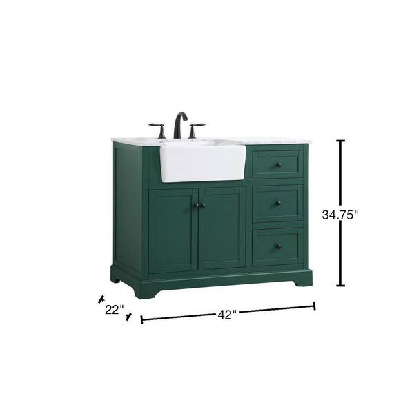 Timeless Home 22 in. W x 42 in. D x 34.75 in. H Bath Vanity in Green with Carrara White Marble Top