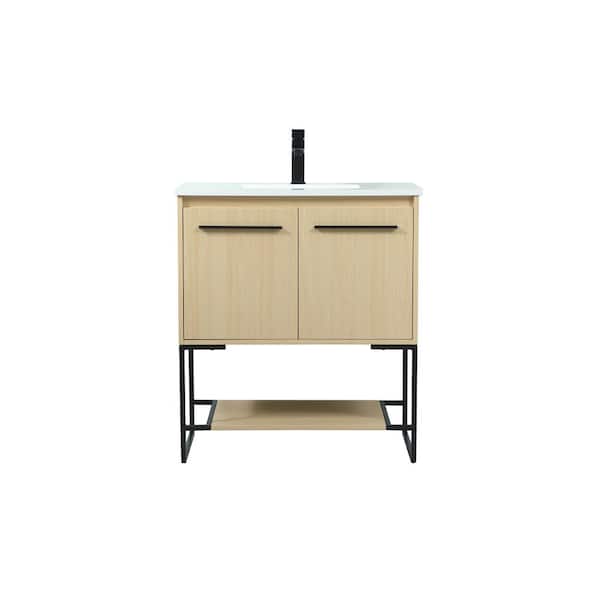 Timeless Home 30 in. W Single Bath Vanity in Maple with Engineered Stone Vanity Top in Ivory with White Basin