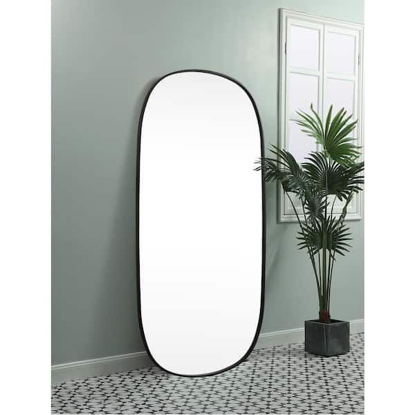 Timeless Home 30 in. W x 60 in. H x Modern Metal Framed Oval Black Mirror