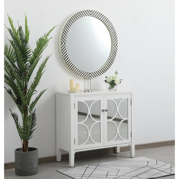 Timeless Home 32 in. W x 32 in. H Modern Wood Framed Round Chevron Mirror