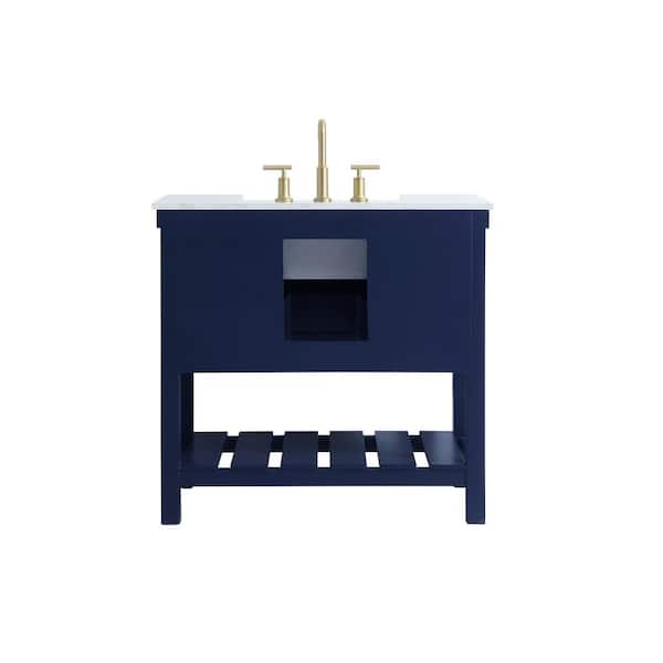 Timeless Home 36 in. Single Sink Blue Bath Vanity with Carrara White Marble Top