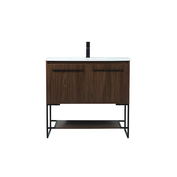 Timeless Home 36 in. W Single Bath Vanity in Walnut with Engineered Stone Vanity Top in Ivory with White Basin