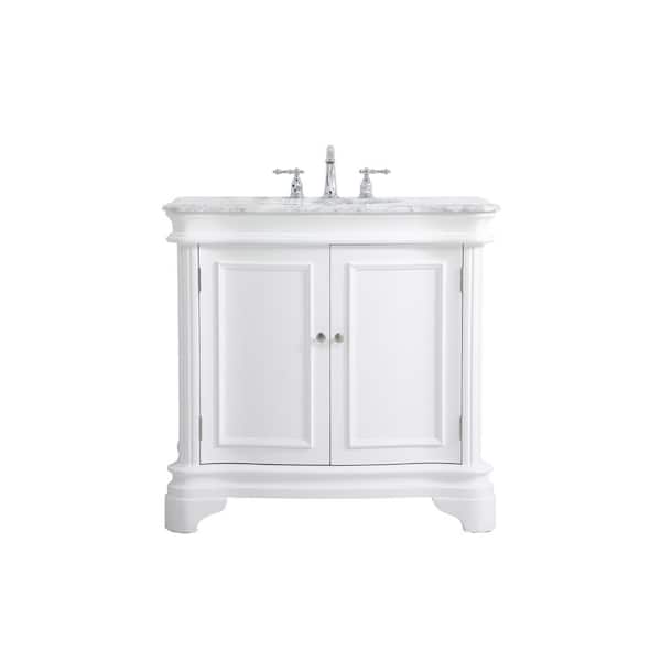 Timeless Home 36 in.W x 21.5 in.D x 35 in.H Single Bath Vanity in White with Marble Vanity Top in White with White Basin