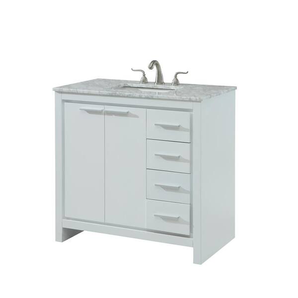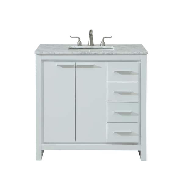 Timeless Home 36 in. W x 21 in. D x 35 in. H Single Bathroom Vanity in White with White Marble Top and White Basin
