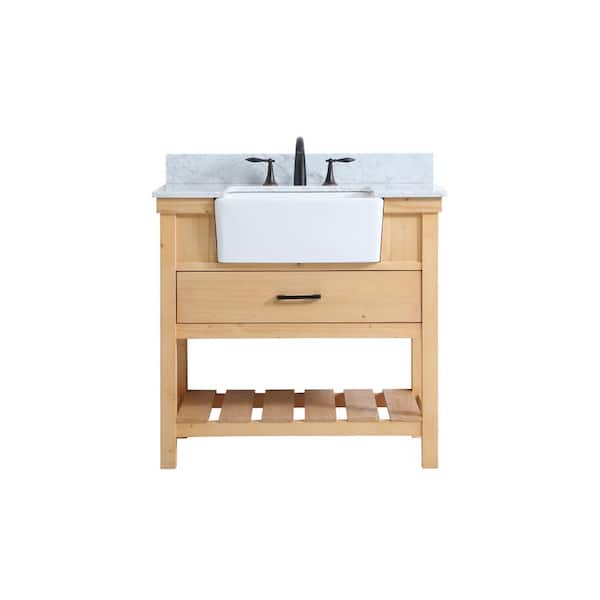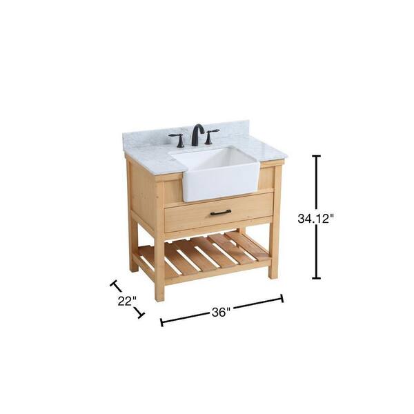 Timeless Home 36 in. W x 22 in. D x 34.13 in. H Bath Vanity in Natural Wood with Carrara Marble Top with White Basin