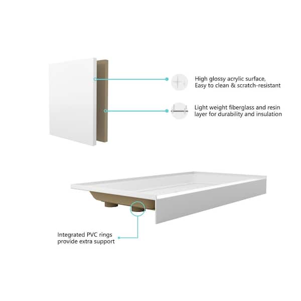Timeless Home 48 in. x 32 in. Single Threshold Shower Base Pan with Center Drain in Glossy White