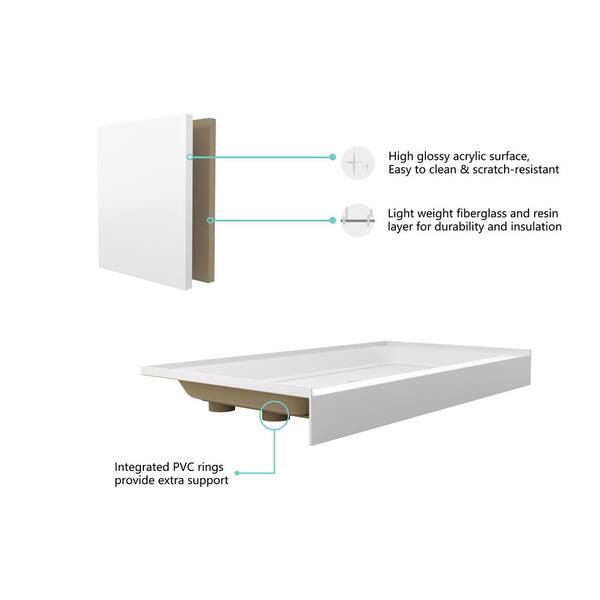 Timeless Home 48 in. x 36 in. Single Threshold Shower Base Pan with Center Drain in Glossy White
