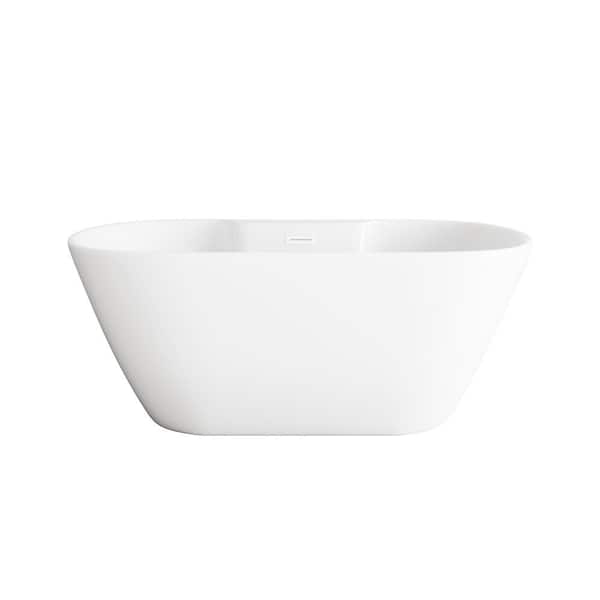Timeless Home 59 in. x 29 in. Soaking Bathtub with Center Drain in Glossy White with Polished White Trim