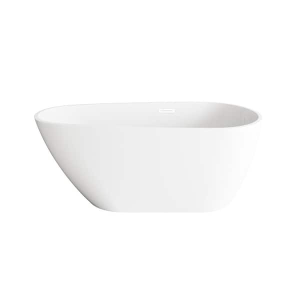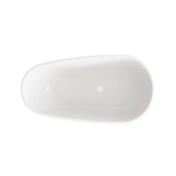 Timeless Home 59 in. x 31.5 in. Soaking Bathtub with Center Drain in Glossy White with Polished White Trim