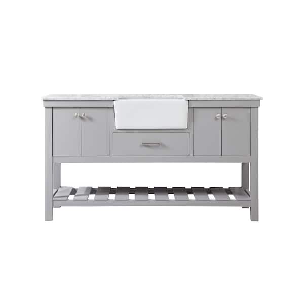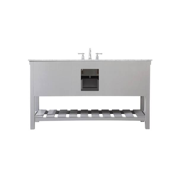 Timeless Home 60 in. W x 22 in. D x 34.13 in. H Single Bathroom Vanity Side Cabinet in Grey with White Marble Top