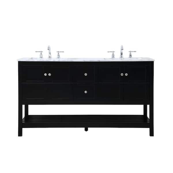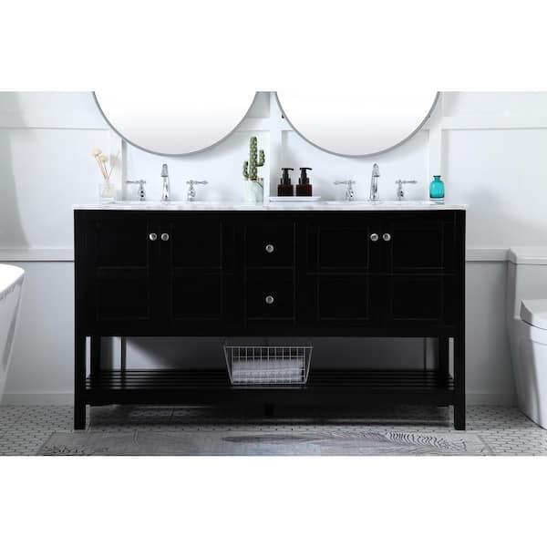 Timeless Home 60 in. W x 22 in. D x 34 in. H Single Bathroom Vanity in Black with Carrara White Marble and White Basin