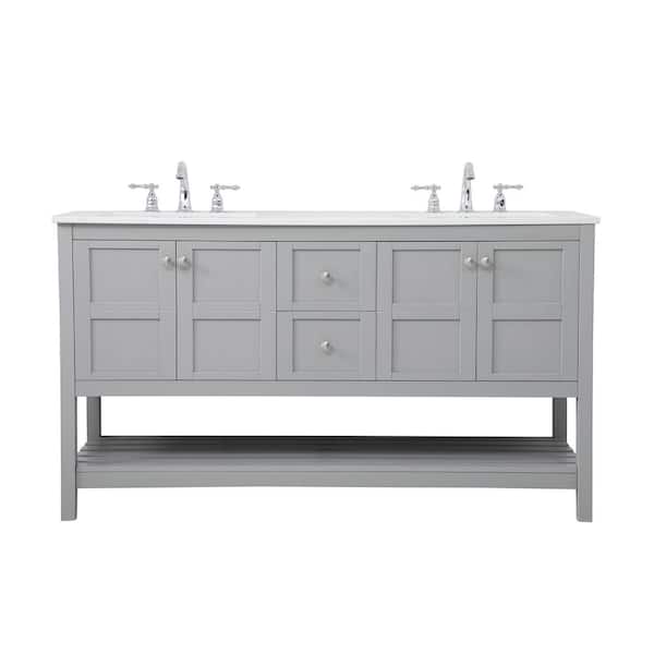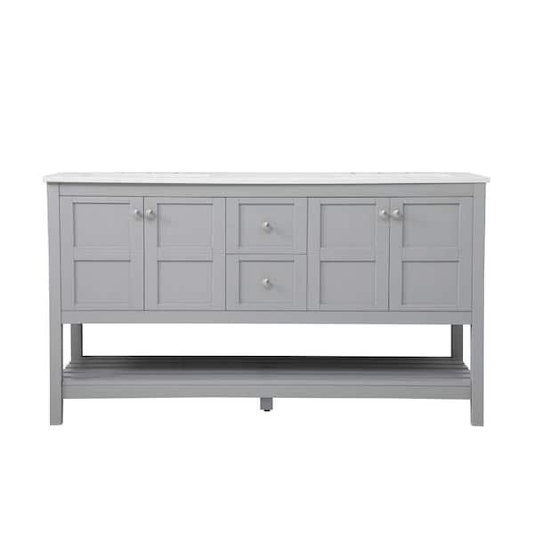 Timeless Home 60 in. W x 22 in. D x 34 in. H Single Bathroom Vanity in Gray with White Engineered Stone with White Basin