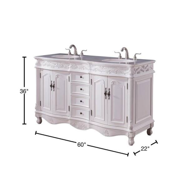 Timeless Home 60 in. W x 22 in. D x 36 in. H Double Bathroom Vanity in White with White Marble Top and White Basin