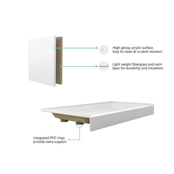 Timeless Home 60 in. x 32 in. Single Threshold Shower Base Pan with Left Drain in Glossy White