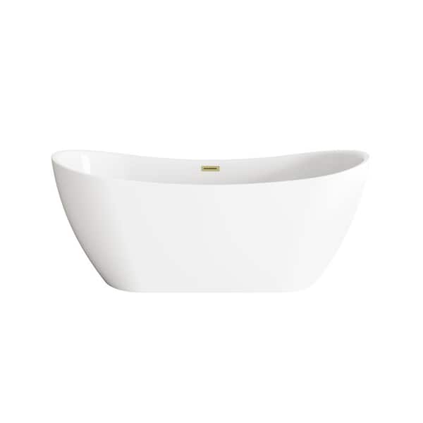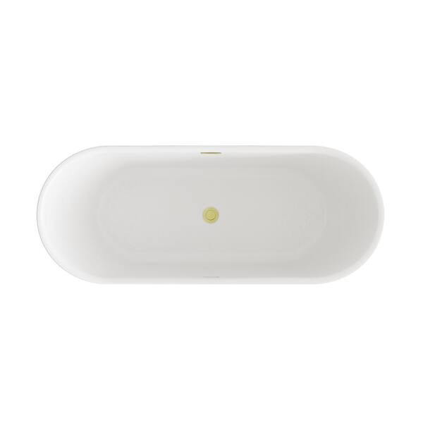Timeless Home 67 in. x 29 in. Soaking Bathtub with Center Drain in Glossy White with Brushed Gold Trim
