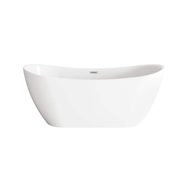 Timeless Home 67 in. x 29 in. Soaking Bathtub with Center Drain in Glossy White with Brushed Nickel Trim