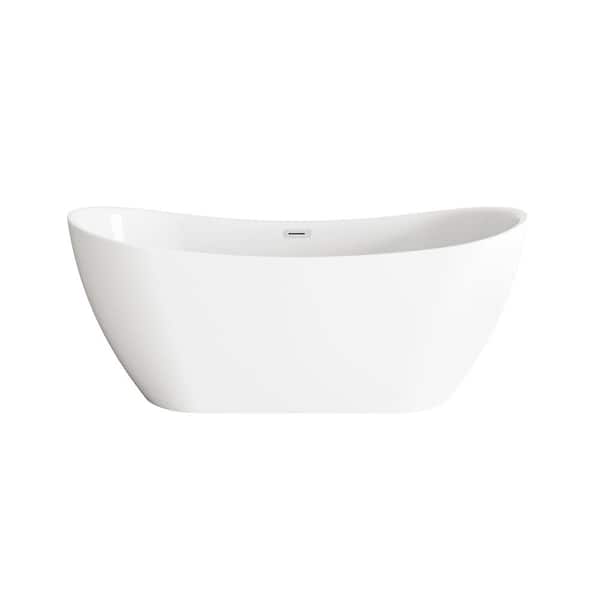 Timeless Home 67 in. x 29 in. Soaking Bathtub with Center Drain in Glossy White with Chrome Trim