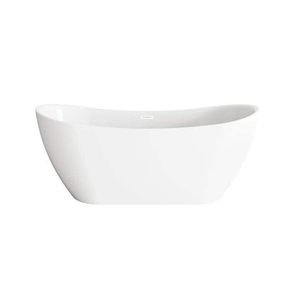 Timeless Home 67 in. x 29 in. Soaking Bathtub with Center Drain in Glossy White with Polished White Trim