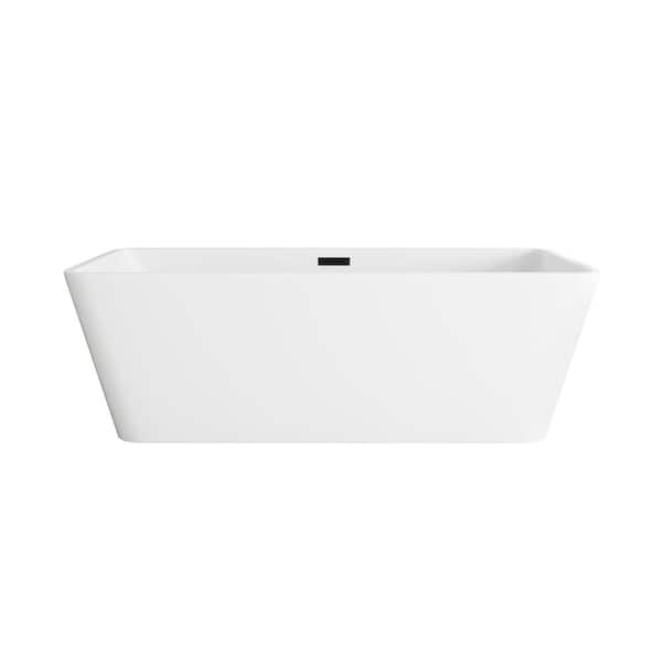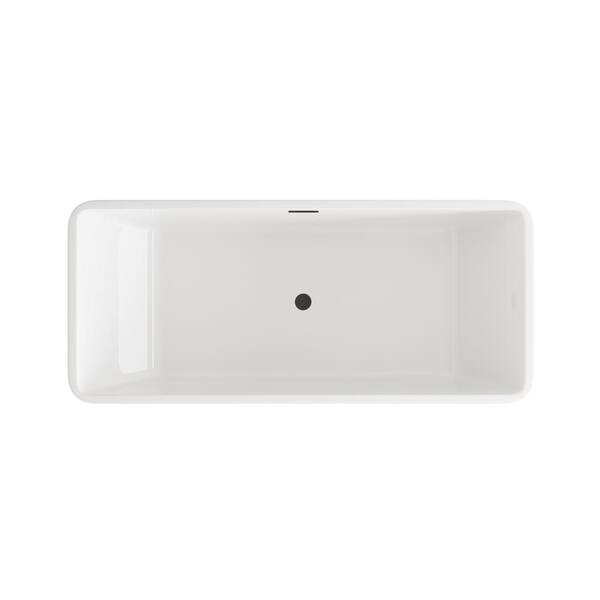 Timeless Home 67 in. x 31.5 in. Soaking Bathtub with Center Drain in Glossy White with Matte Black Trim
