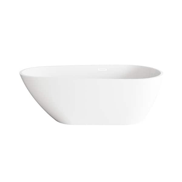 Timeless Home 67 in. x 31.5 in. Soaking Bathtub with Center Drain in Glossy White with Polished White Trim