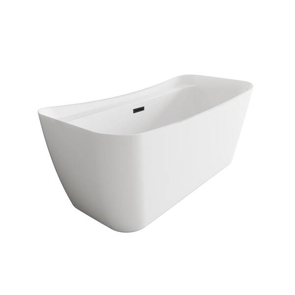 Timeless Home 67 in. x 31 in. Soaking Bathtub with Center Drain in Glossy White with Matte Black Trim