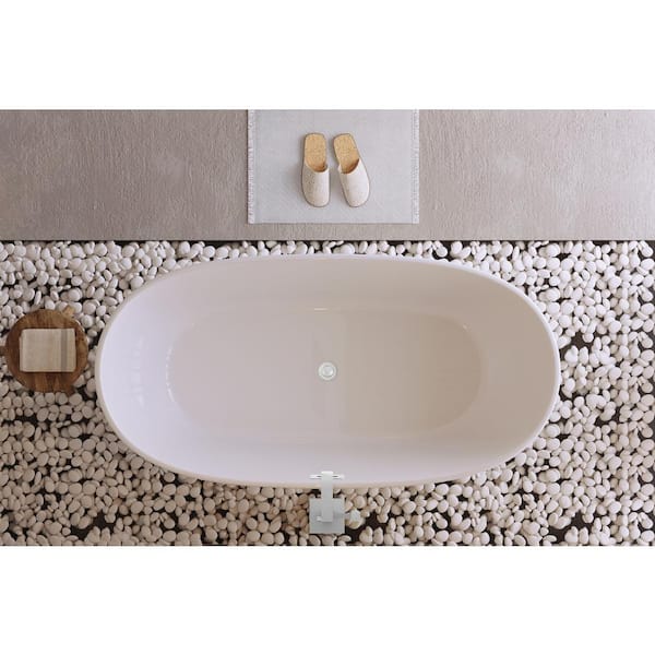 Timeless Home 70 in. x 33.5 in. Soaking Bathtub with Center Drain in Glossy White