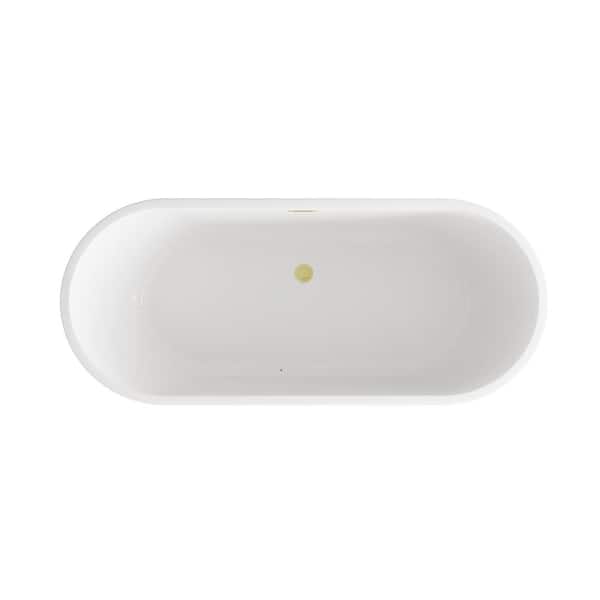 Timeless Home 71 in. x 31 in. Soaking Bathtub with Center Drain in Glossy White with Brushed Gold Trim