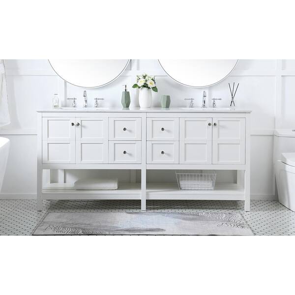 Timeless Home 72 in. W x 22 in. D x 34 in. H Double Bathroom Vanity in White with White Engineered Stone and White Basin
