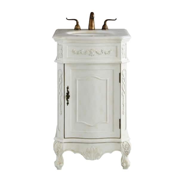 Timeless Home Danny 21 in. W x 19 in. D Single Bathroom Vanity in Antique White with White Marble and Basin
