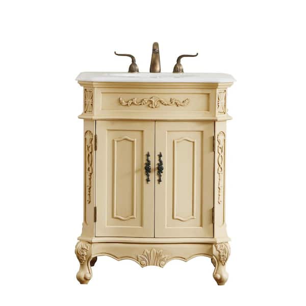 Timeless Home Danny 21 in. W x 27 in. D Single Bathroom Vanity in Light Antique Beige with White Marble and Basin