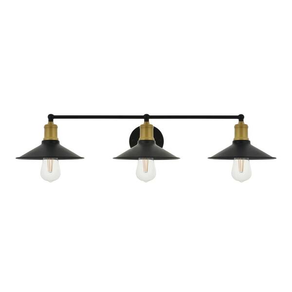 Timeless Home Ellen 33.1 in. W x 5.8 in. H 3-Light Brass and Black Wall Sconce