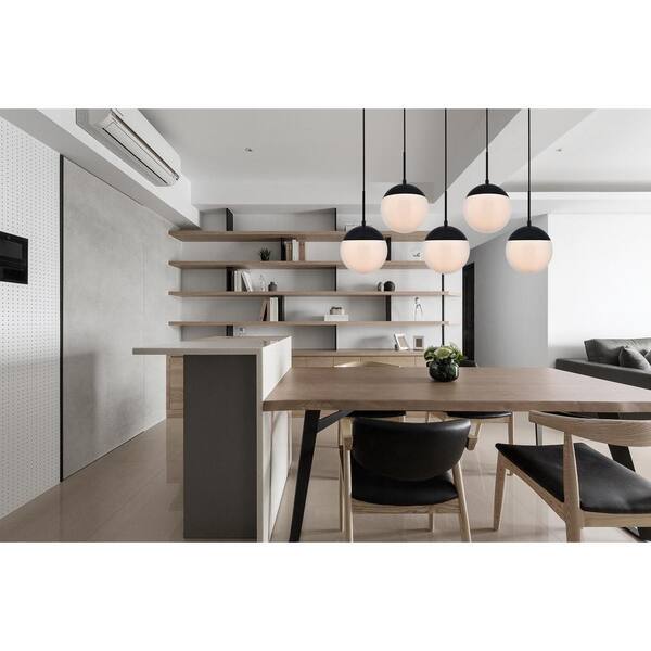 Timeless Home Ellie 5-Light Black Rectangular Pendant with 8 in. W x 7.5 in. H Frosted Glass Shade