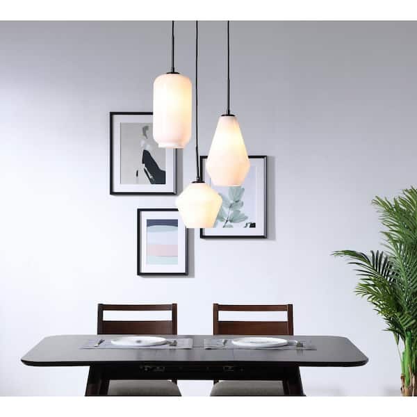 Timeless Home Gael 3-Light Black Pendant w/6.1 in./7.1 in./7.9 in. x 11.4 in./11 in./7.5 in. Frosted White Shade Glass
