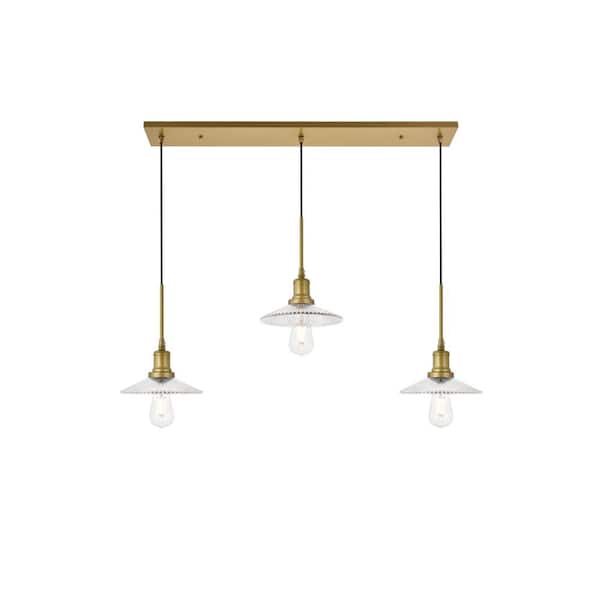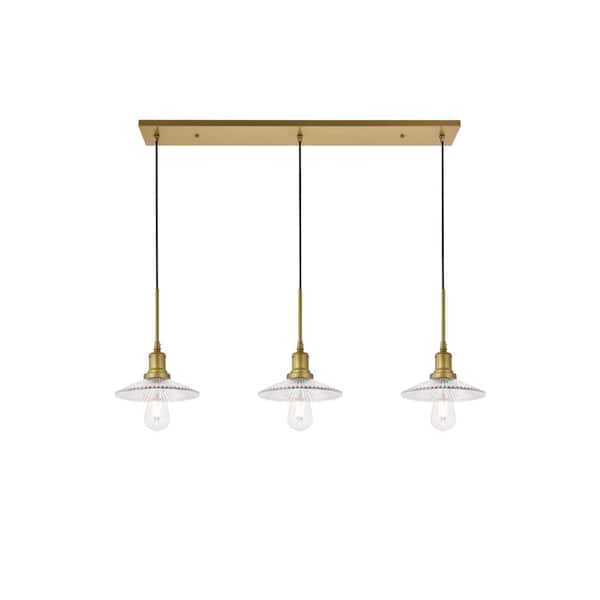 Timeless Home Walker 3-Light Pendant in Brass and Clear with 8.5 in. W x 2 in. H Shade